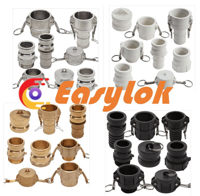 Self-locking: Self-locking camlocks meet the specifications for quick disconnect couplers. The aluminum cam locks have brass locking cam arms. Pins, rings and the locking plate are 300 series stainless steel.
